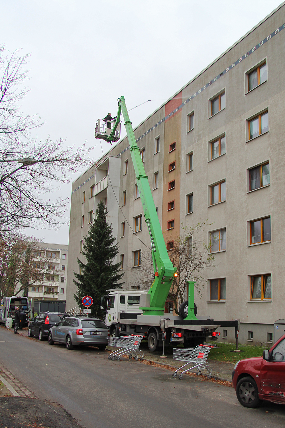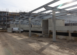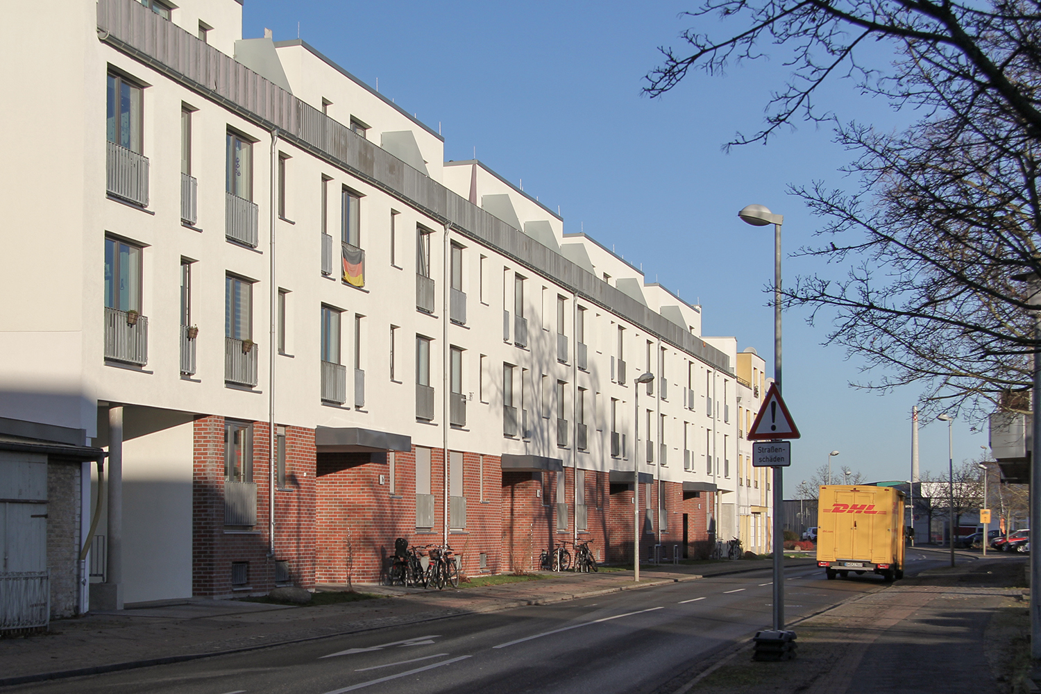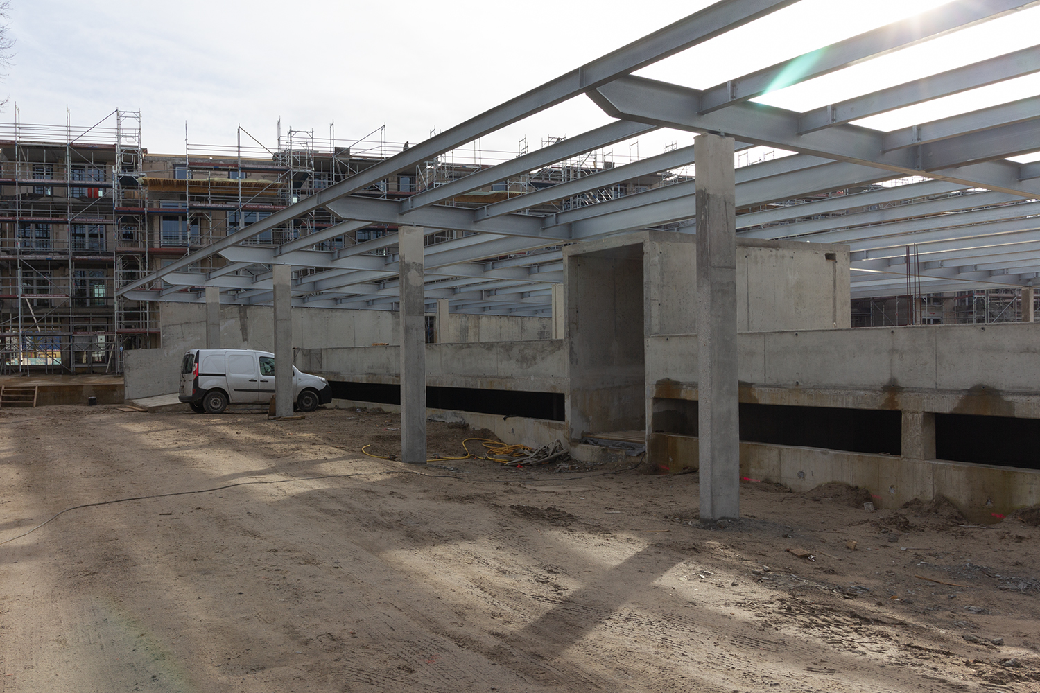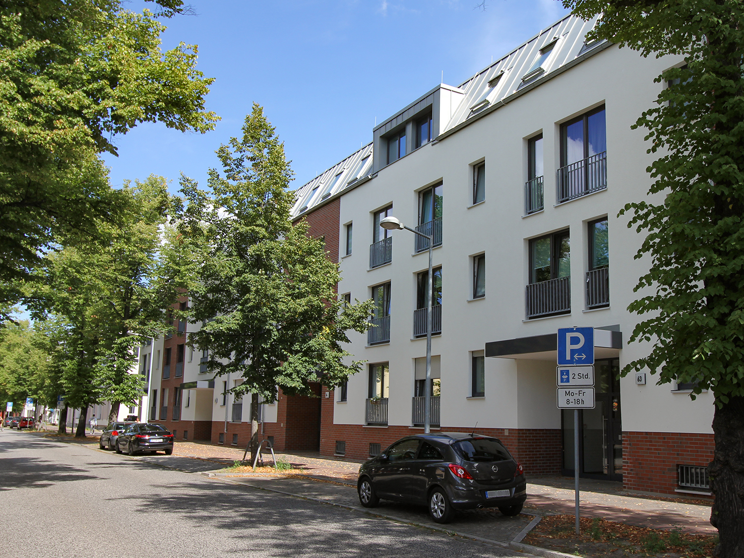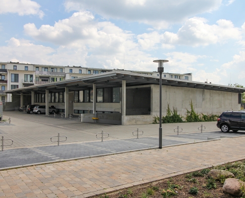 Als Ersatz für die im Innenhof der Wohnblöcke Albert-Schweitzer-Straße 3-5 weggefallenen Pkw-Stellplätze hat die HWB auf dem östlich der Wohnblöcke gelegenen Parkplatz ein zweigeschossiges Parkdeck mit 97 Stellplätzen errichtet. Das Parkdeck ist so konzipiert, dass es künftig als „Basisstation“ sowohl für die individuelle Elektromobilität der Mieter:innen als auch für Miet- oder Sharing-Angebote genutzt werden kann.