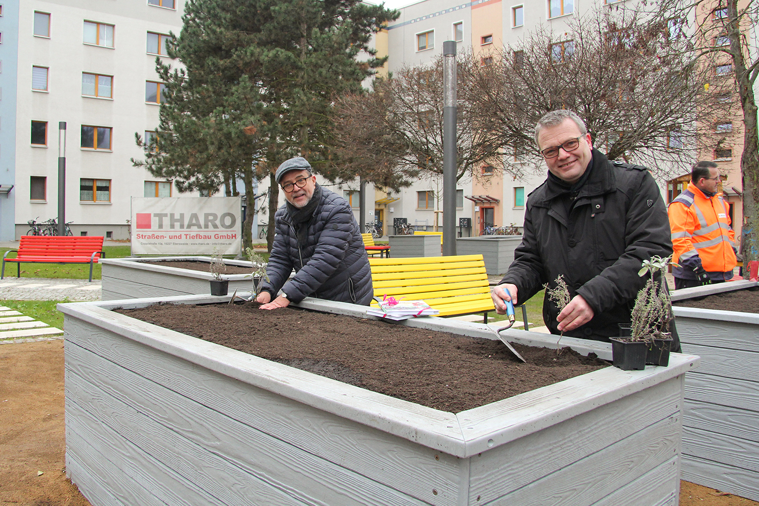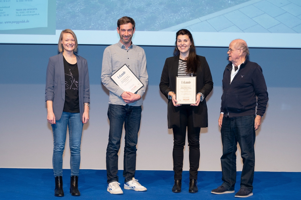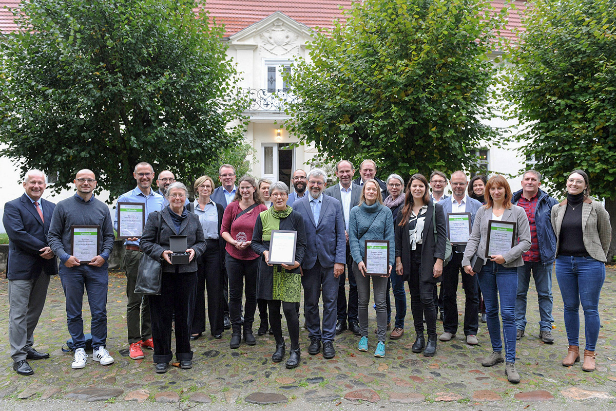 Axel Vogel, brandenburgischer Umweltminister und Schirmherr des Wettbewerbs, überreichte am 12. Oktober 2023 im Rahmen einer Festveranstaltung im Schloss Blankensee Urkunden und Preise an die Bauherren, Planungsbüros und ausführenden Garten- und Landschaftsbaufirmen der vier Siegerprojekte. Für das Albert-Schweitzer-Quartier wurden die HWB als Bauherrin, die federführenden Landschaftsplaner:innen von GAST LandschaftsArchitekten bdla, Gast, Albrecht. Seleborg Part mbH sowie THARO Straßen- und Tiefbau GmbH als bauausführende Firma geehrt.