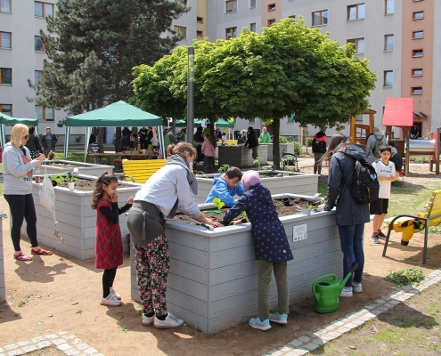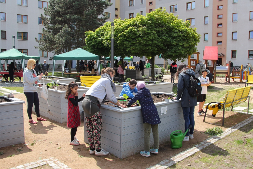 Wie die Erfahrungen der sozialen Quartiersentwicklung zeigen, sind die Bewohner:innen selbst wichtige Akteure für eine positive Veränderung ihrer Lebensbedingungen. Um sie aktiv zu unterstützen und zu bestärken, wurde zeitlich befristet ein Integrationsmanagement für das Quartier eingesetzt. Von Oktober 2018 bis September 2021 hat das Integrationsmanagement mit einer Reihe niedrigschwelliger Angebote und Projekte das nachbarschaftliche Zusammenleben gefördert und die Integration der Bewohner:innen in Nachbarschaft und Gesellschaft unterstützt.