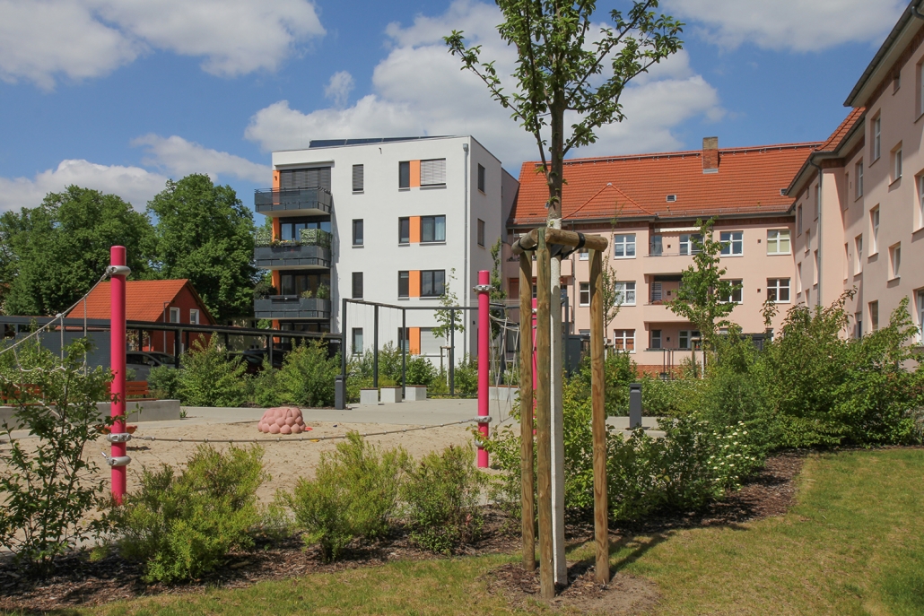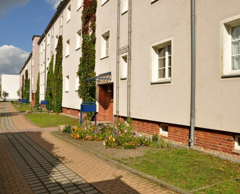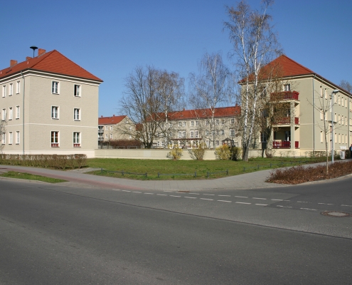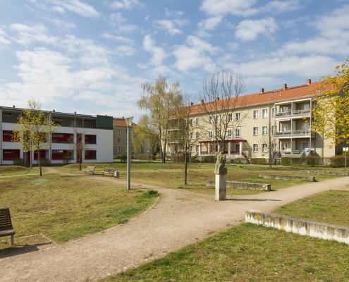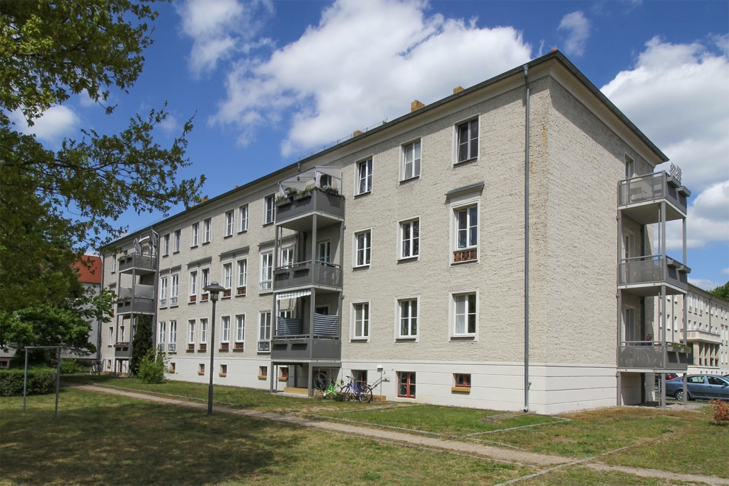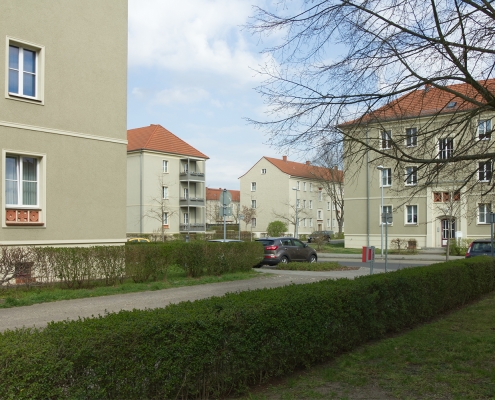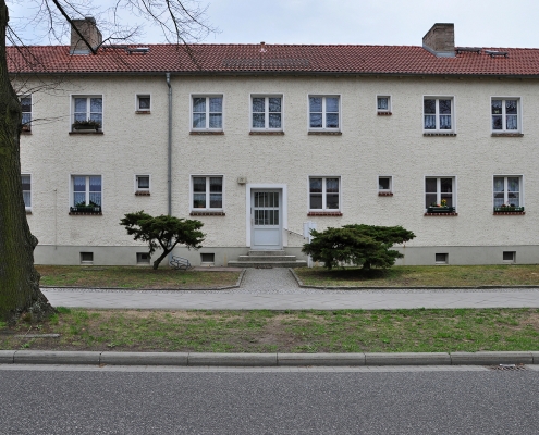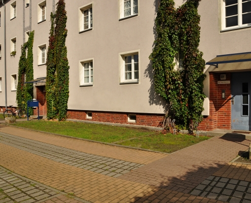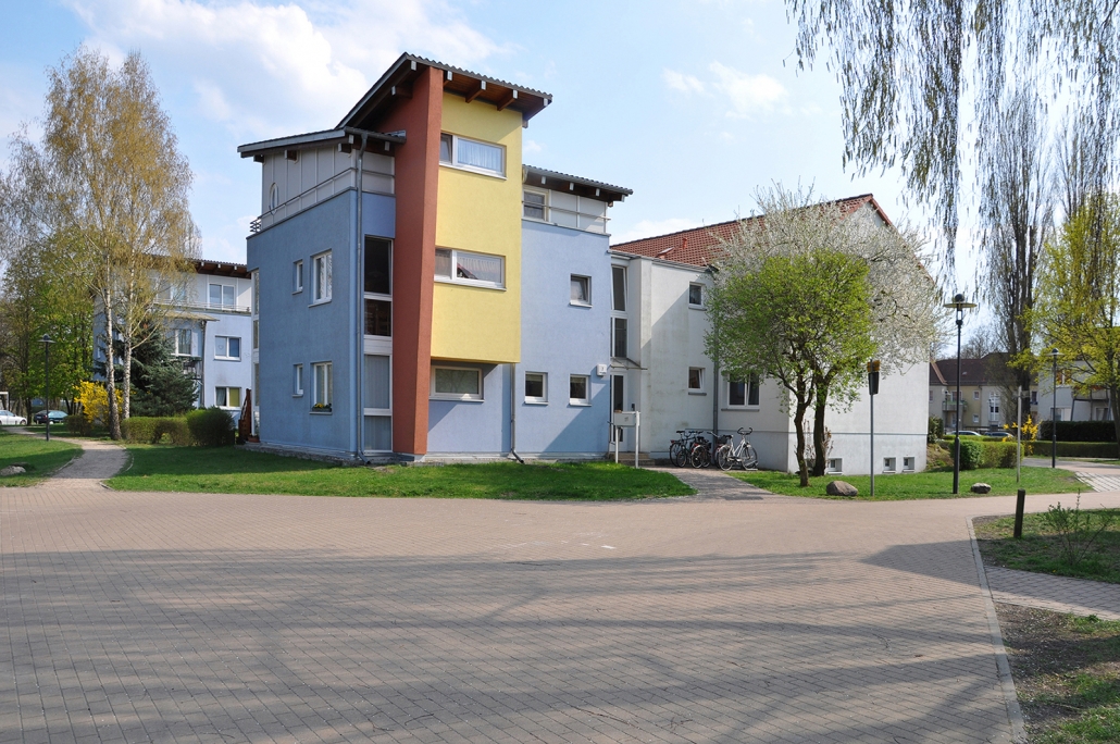 In der Aktivistensiedlung wohnen Sie ruhig, grün und zentrumsnah. Zum Bahnhof und zum Havelplatz sind es nur ein paar Minuten mit dem Rad. Die Anfang der 1950er Jahre für Stahlwerkerfamilien errichtete Siedlung hat die HWB umfassend modernisiert und durch Neubauten ergänzt. Die zwei- und dreigeschossigen Wohnhäuser gruppieren sich um grüne Wohnhöfe mit Spielplätzen und Mietergärten. Autos parken am Rande des Wohngebiets.
