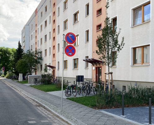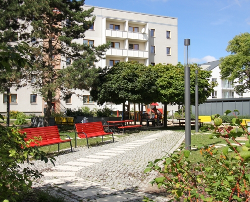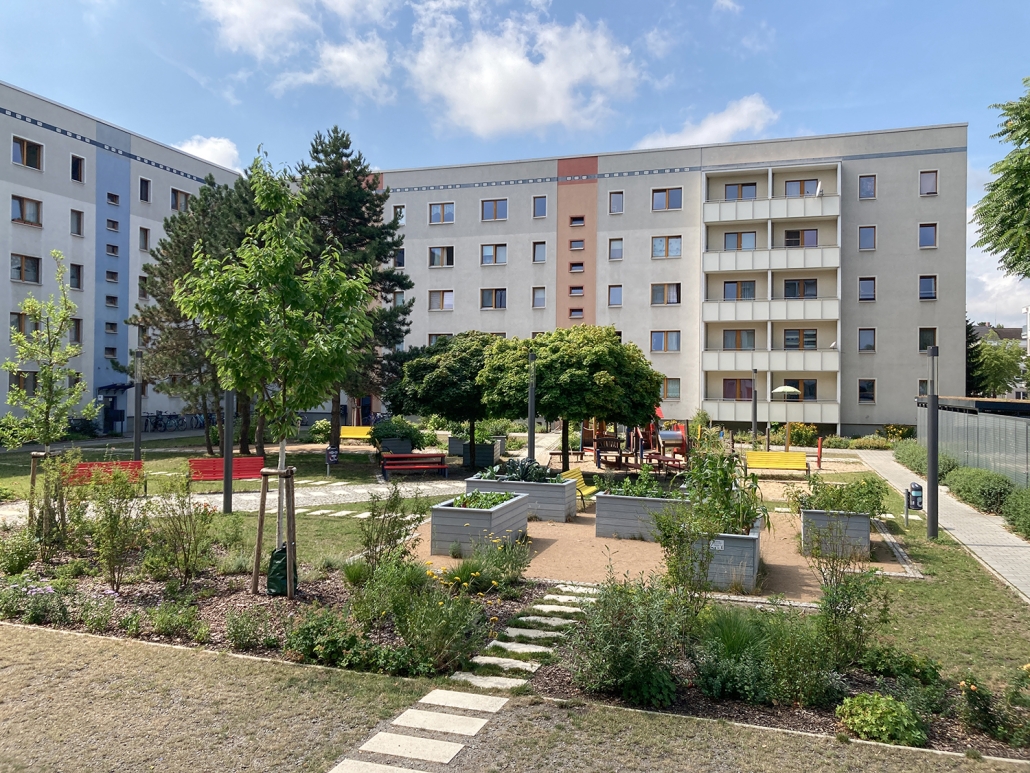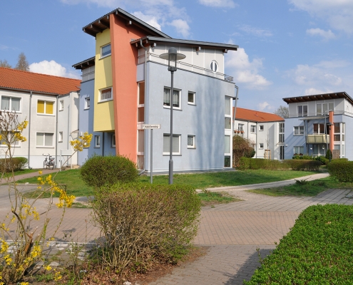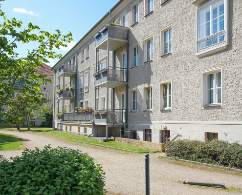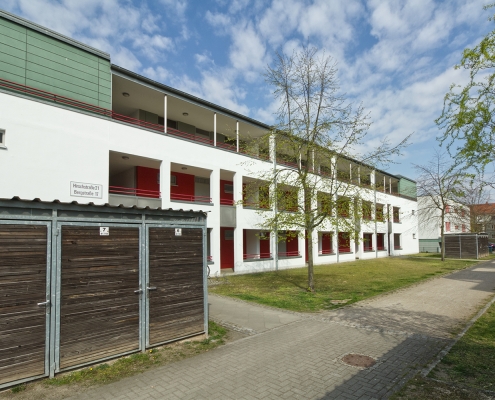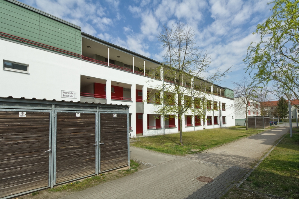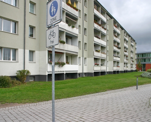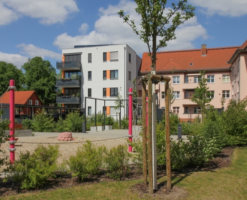 In der Aktivistensiedlung wohnen Sie ruhig, grün und zentrumsnah. Zum Bahnhof und zum Havelplatz sind es nur ein paar Minuten mit dem Rad. Die Anfang der 1950er Jahre für Stahlwerkerfamilien errichtete Siedlung hat die HWB umfassend modernisiert und durch Neubauten ergänzt. Die zwei- und dreigeschossigen Wohnhäuser gruppieren sich um grüne Wohnhöfe mit Spielplätzen und Mietergärten. Autos parken am Rande des Wohngebiets.