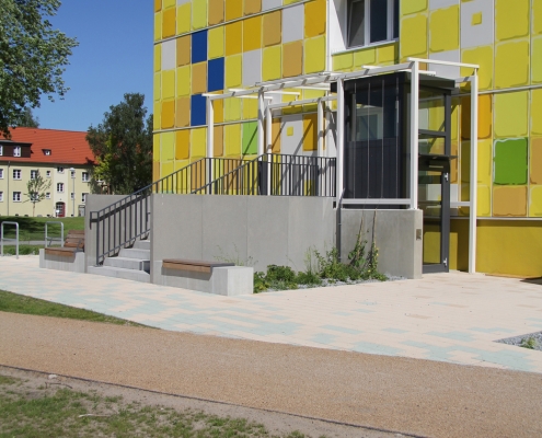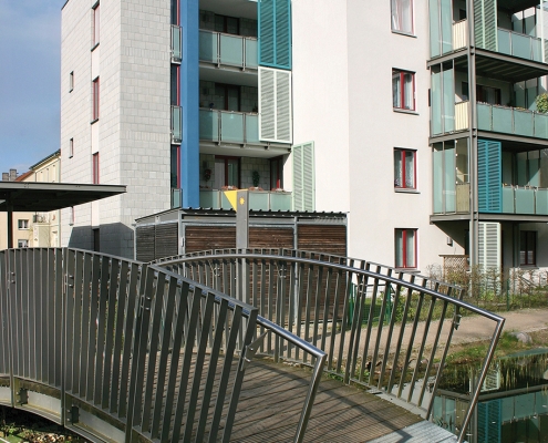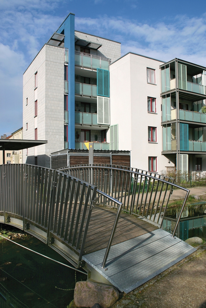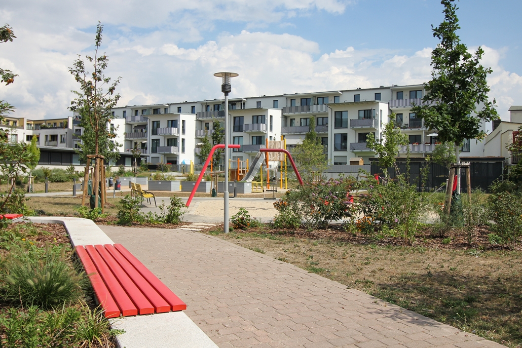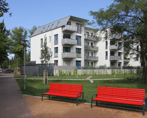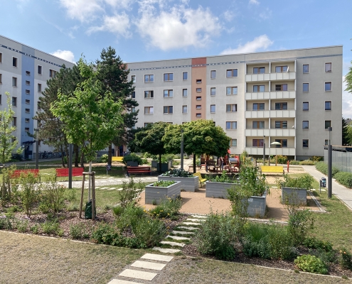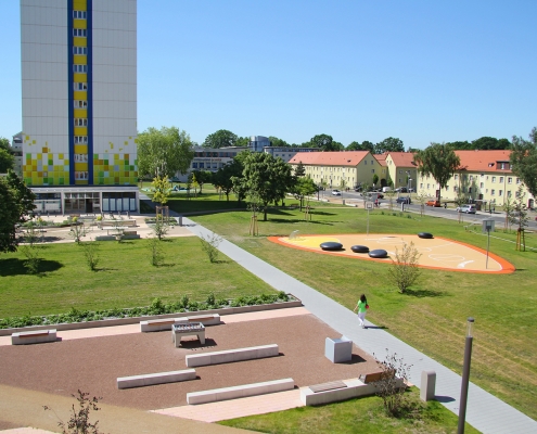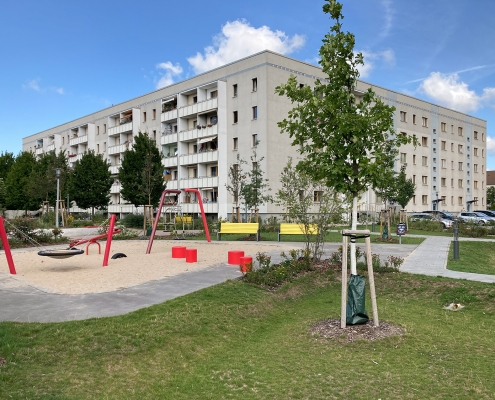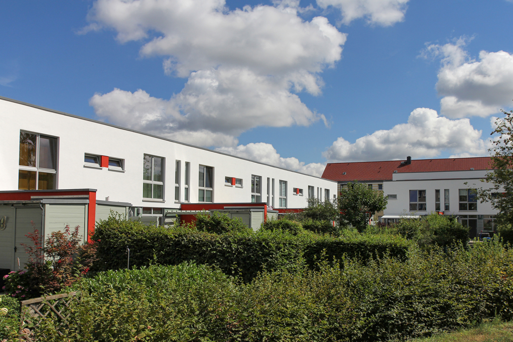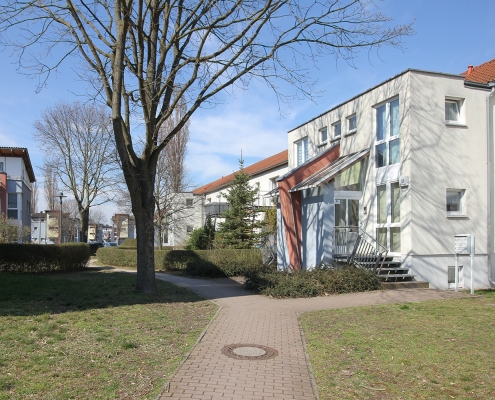 Das Albert-Schweitzer-Quartier liegt nur wenige Gehminuten von Bahnhof und Stadtzentrum entfernt. Zwischen 2019 und 2021 hat die HWB hier 114 neue Wohnungen und ein Parkdeck mit knapp 100 Pkw-Stellplätzen und Ladeinfrastruktur für die Elektromobilität gebaut. Ein abwechslungsreicher Grüngürtel zieht sich durch das Quartier. Darin eingebettet sind Spielplätze, Hochbeete zum gemeinsamen Gärtnern, ein Bouleplatz, Wäschetrockenplätze und Sitzecken. Ein Multisportfeld mit Toren und Streetballkorb, kleine Kletterfelsen sowie mehrere Fitnessgeräte laden zur sportlichen Betätigung ein.