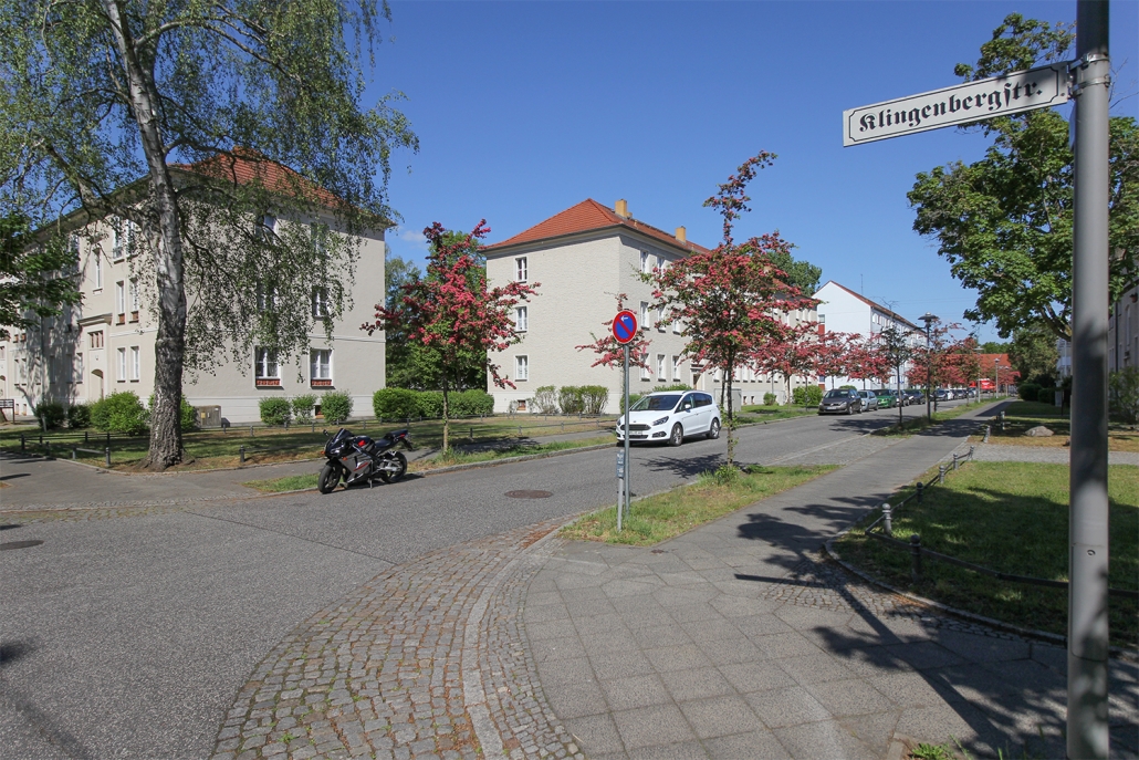 Das Klingenbergviertel liegt nur ein paar Gehminuten südlich des Stadtzentrums. Havelpassage, Postplatz und Bahnhof sind von hier bequem zu Fuß oder mit dem Rad zu erreichen. Das Wohngebiet wurde in den 1950er Jahren als Werkssiedlung für die Belegschaft des VEB Lokomotivbau Elektrotechnische Werke (LEW) errichtet. Heute sind alle Häuser des Viertels denkmalgerecht modernisiert und mehr als die Hälfte der Wohnungen wurde nachträglich mit einem großen Balkon ausgestattet. Terrakotta-Reliefs aus der Keramikwerkstatt von Hedwig Bollhagen schmücken die hellen Fassaden der dreigeschossigen Wohnhäuser.