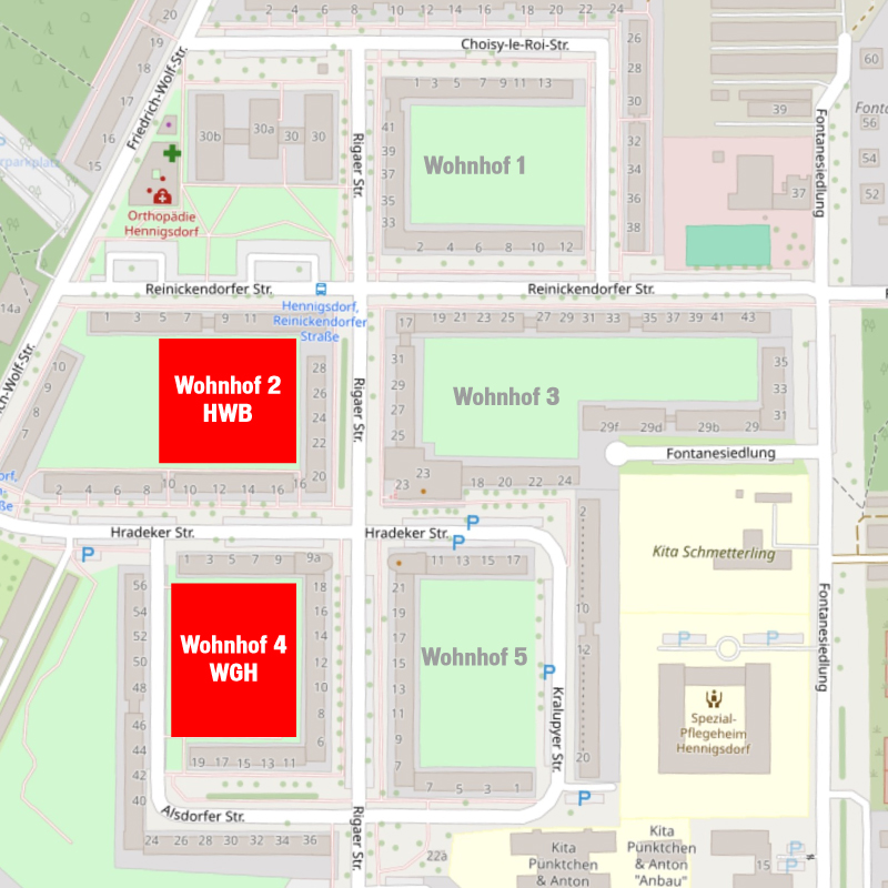 Als Auftakt zur Aufwertung des Wohngebiets Nord planen HWB und WGH für 2025 den Umbau und die Neugestaltung des Wohnhofs 2 (zwischen Reinickendorfer, Rigaer und Hradeker Straße) und des Wohnhofs 4 (zwischen Alsdorfer, Hradeker und Rigaer Straße). Die Stadt begrüßt diese Pläne. Um die beiden Wohnungsunternehmen zu unterstützen und ihnen Planungssicherheit zu geben, haben die Stadtverordneten auf Vorschlag der Stadtverwaltung beschlossen, 50 Prozent der Kosten der Baumaßnahmen aus dem städtischen Haushalt zu finanzieren. Der maximale Zuschuss für das HWB-Projekt „Gestaltung Wohnhof 2 mit Waldumbau“ beträgt 450.000 Euro. Für das WGH-Projekt „Gestaltung Wohnhof 4 mit Waldumbau“ wurde ein Maximalbetrag von 375.000 Euro bewilligt.